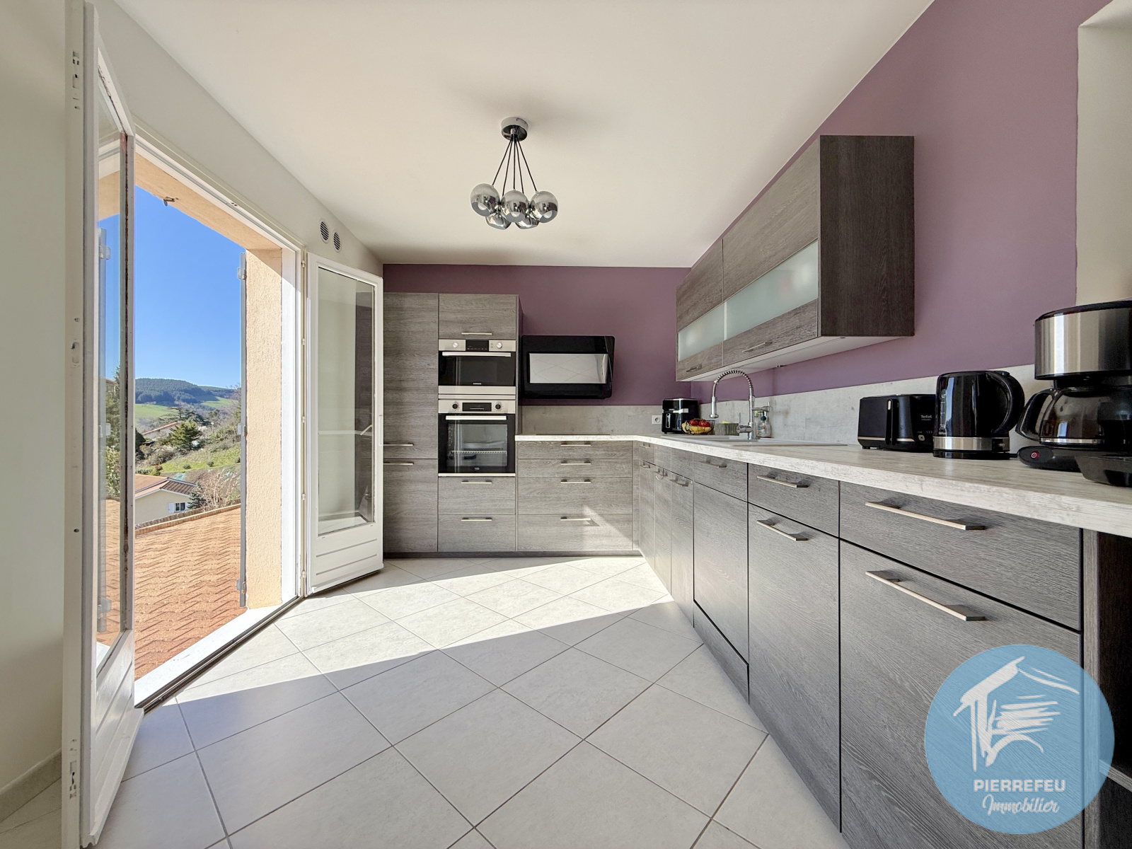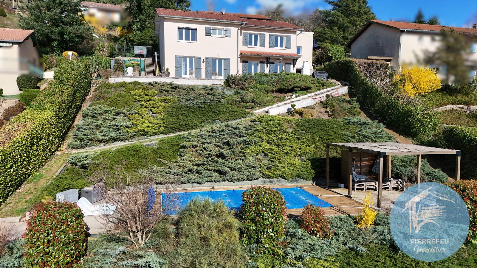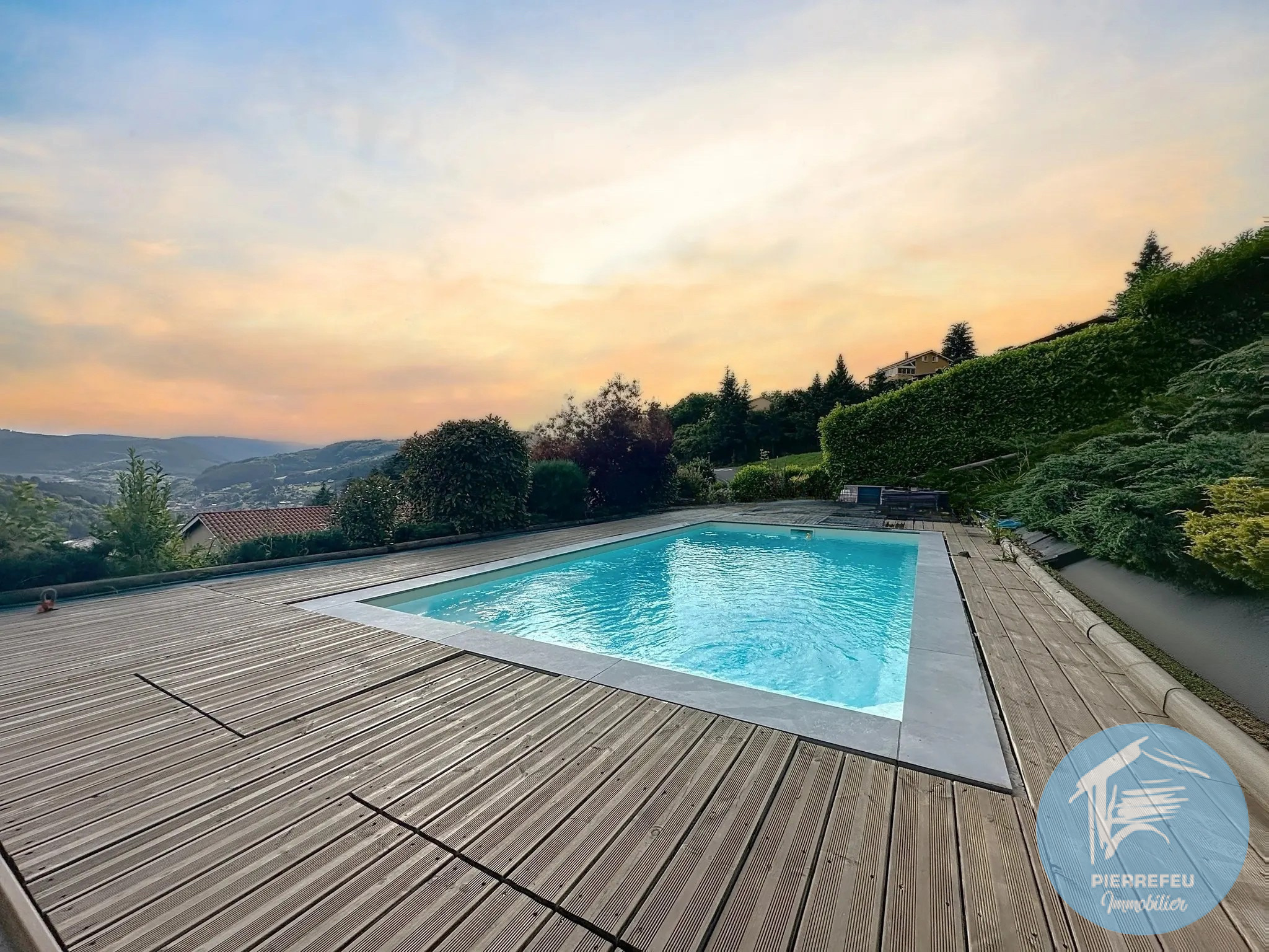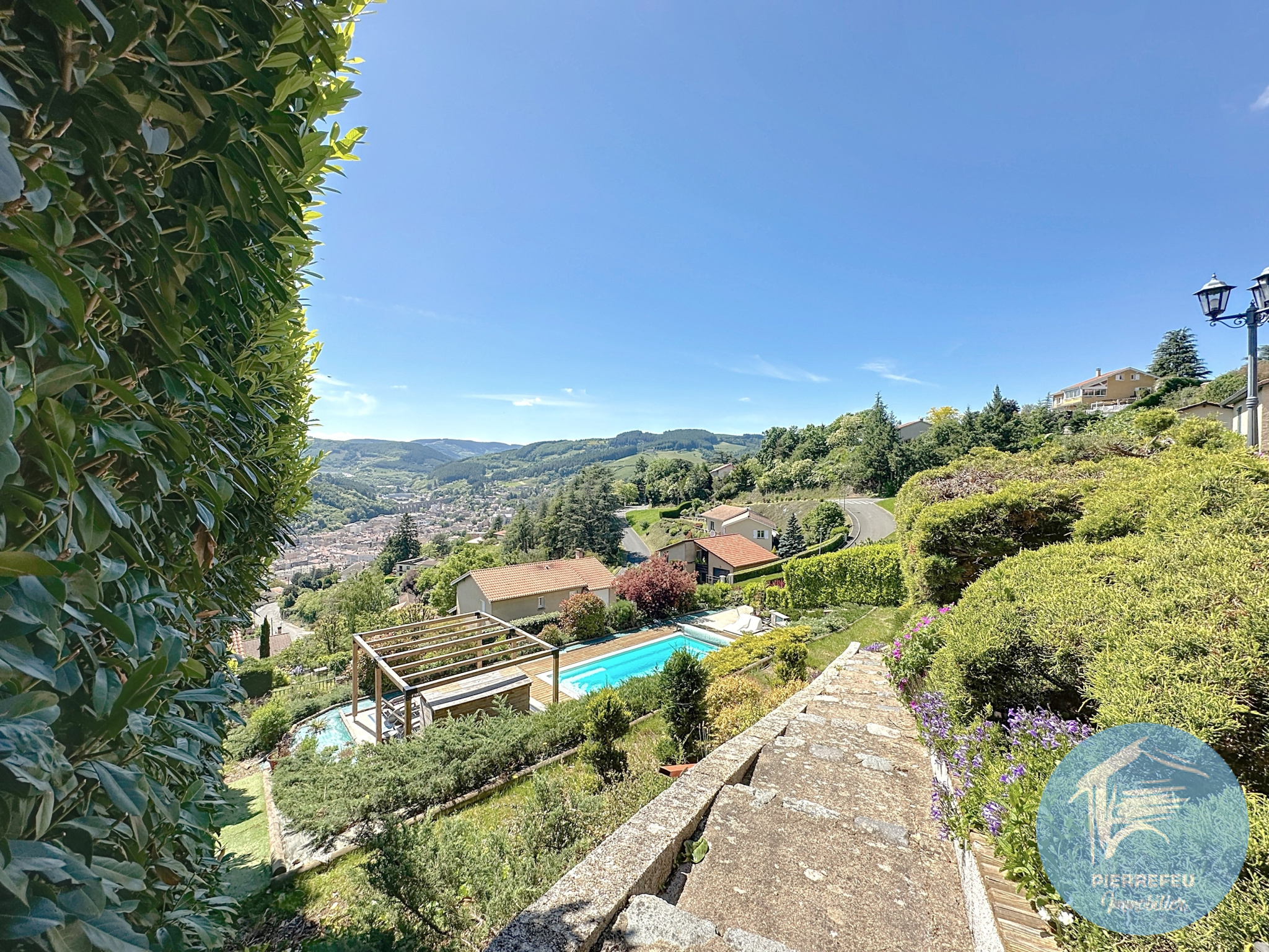 Sur les hauteurs de Tarare, dans un environnement calme et recherché, PIERREFEU IMMOBILIER vous invite à découvrir cette belle maison familiale de plus de 165 m², offrant de beaux volumes et une architecture originale en niveaux inversés, à seulement quelques minutes à pied d’un collège et d’un lycée.