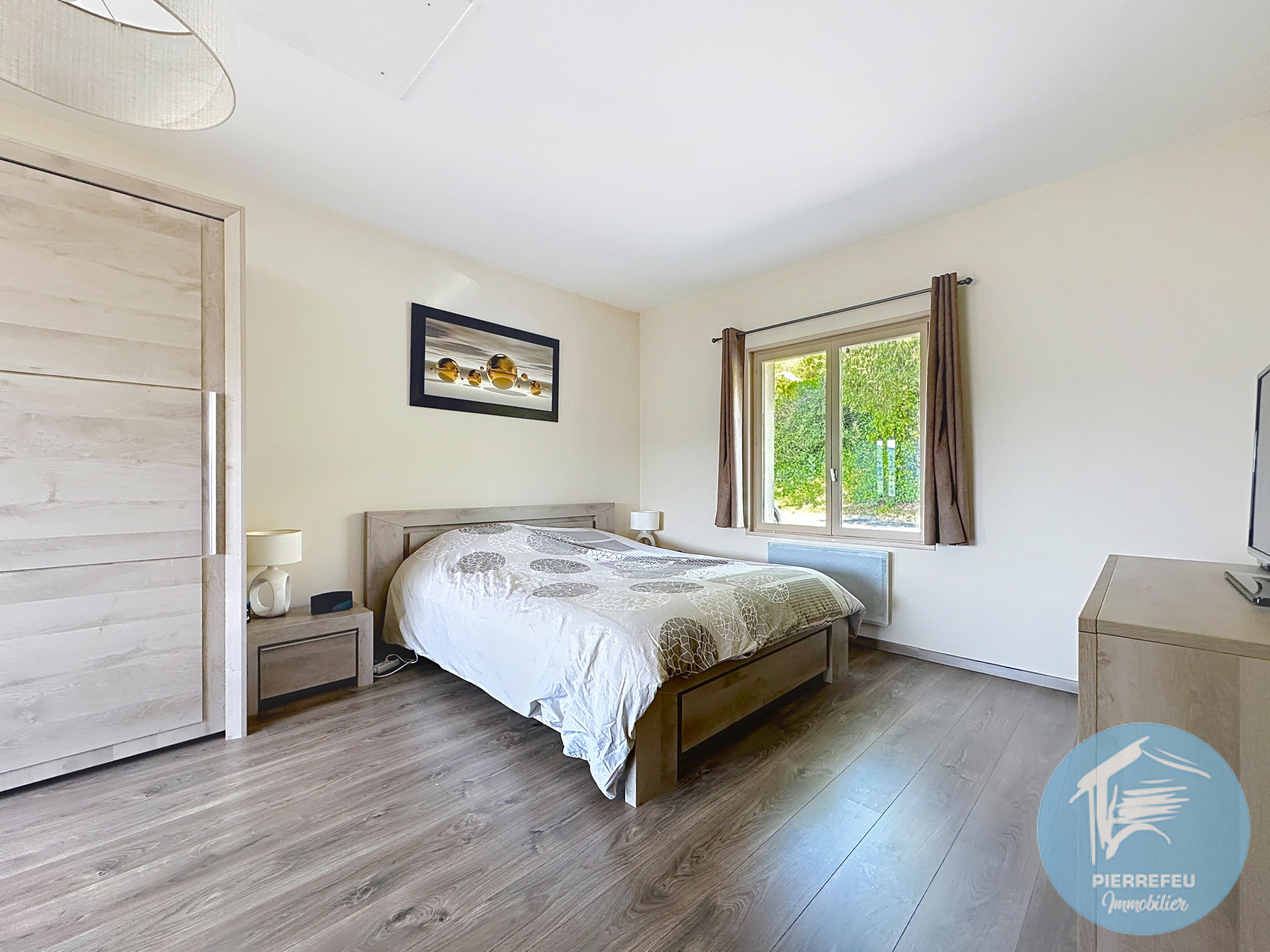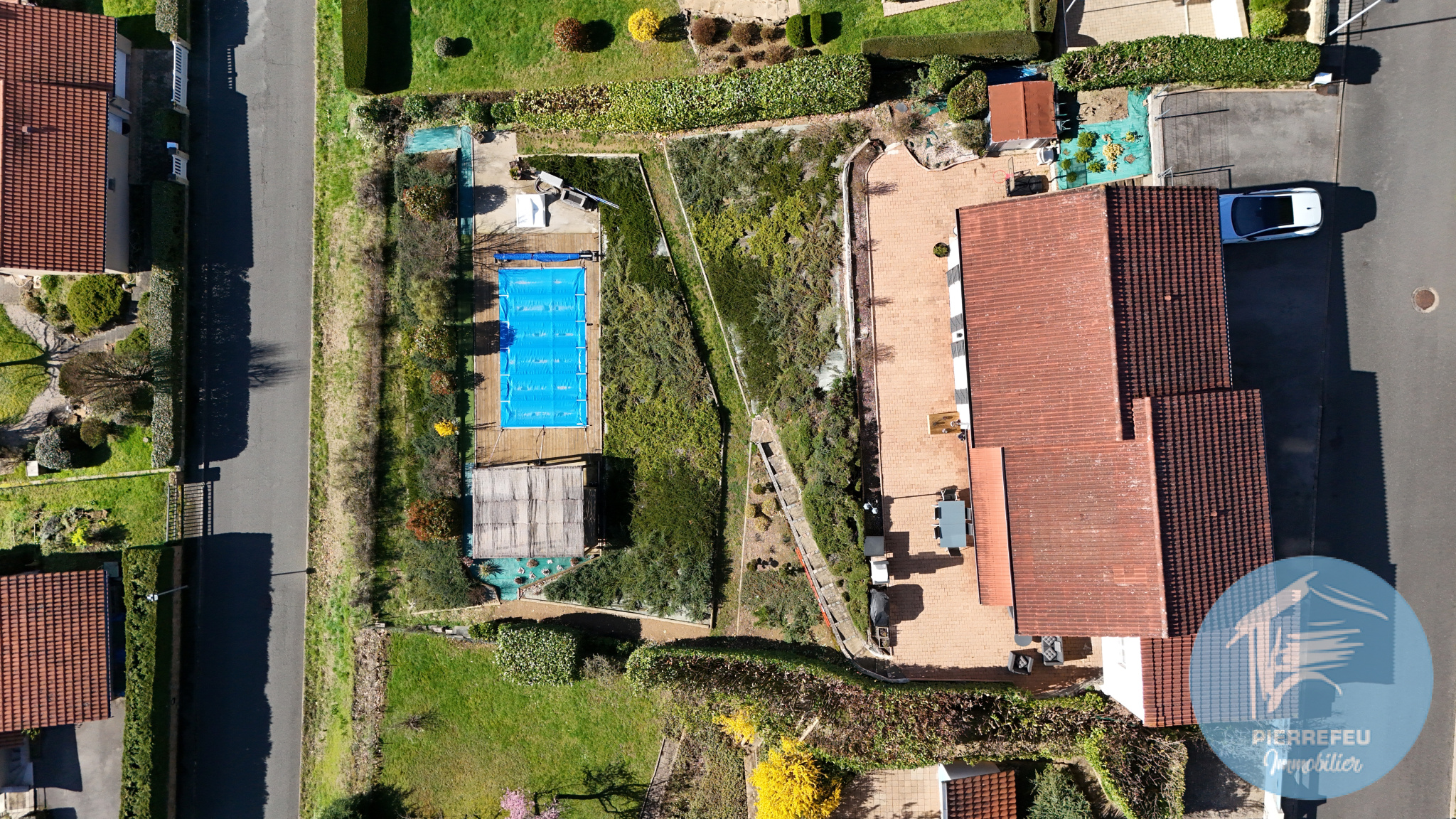 À l’extérieur, vous bénéficierez d’un terrain entièrement aménagé et arboré d’environ 1 057 m², véritable écrin de verdure, agrémenté d’une piscine chauffée de 3,5 x 7 m. La vue dégagée et l’exposition plein sud apportent une luminosité remarquable et un cadre de vie particulièrement agréable.