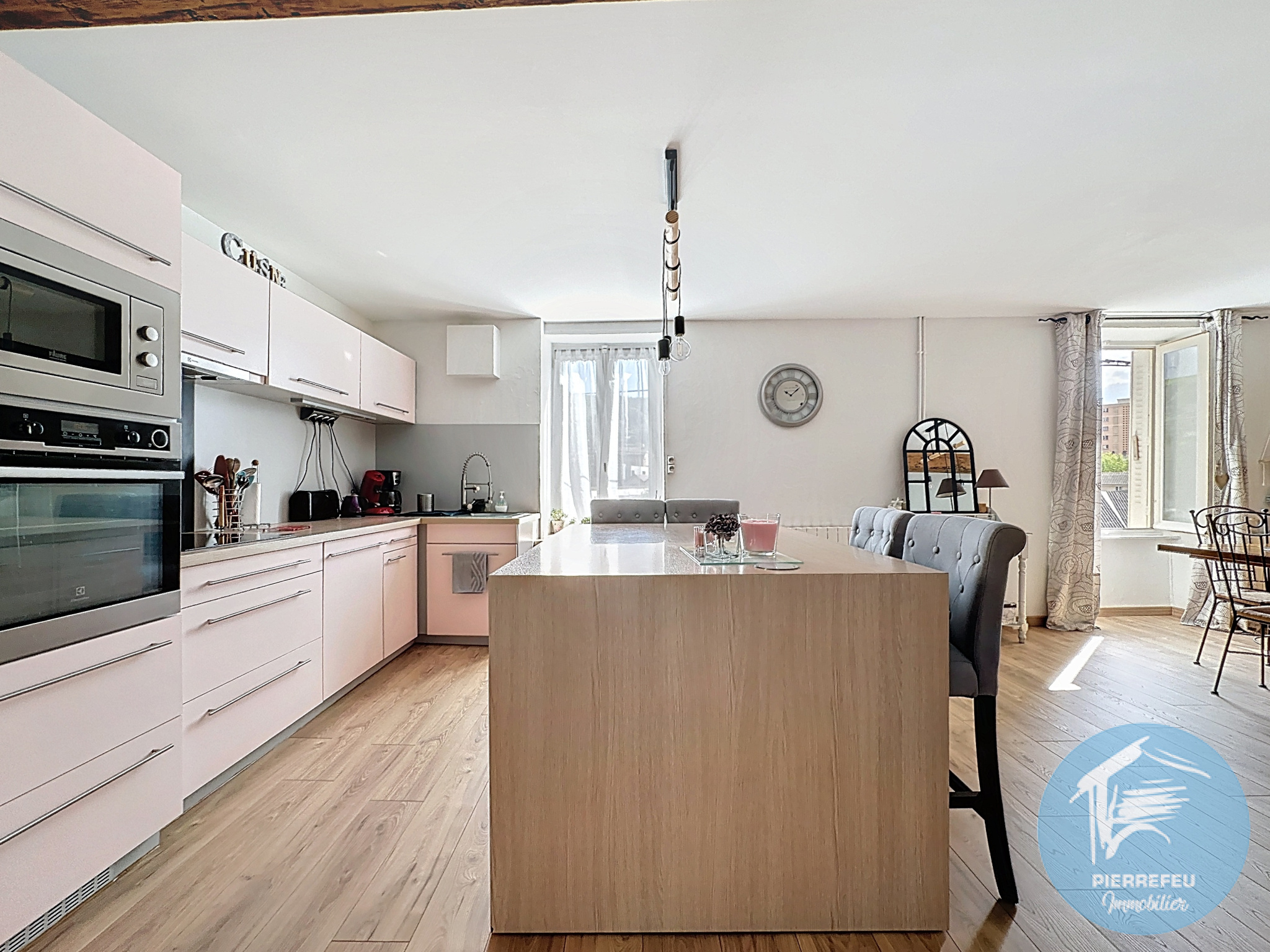 À deux pas du centre-ville, PIERREFEU IMMOBILIER vous invite à découvrir cette charmante maison de ville alliant cachet et modernité. Dès l’entrée, vous trouverez une cuisine ouverte sur la salle à manger, créant un espace convivial et lumineux. Quelques marches mènent à un agréable séjour/salon, équipé d’un poêle à granules, avec une mezzanine offrant un espace supplémentaire (bureau, salle de jeux, coin lecture...). Au premier étage, l’espace parental se compose d’une grande chambre de plus de 17 m², d’une salle d’eau ainsi que d’un wc. Le second étage dessert trois chambres, dont l’une bénéficiant d’un espace de couchage en mezzanine. En rez-de-jardin (niveau N-1), vous découvrirez une cuisine d’été avec de nombreux rangements, ouvrant directement sur l’extérieur. Vous profiterez ainsi d’une grande terrasse ainsi que d’un espace détente avec sauna et pergola, un véritable atout en centre-ville. La maison est équipée d’un chauffage central au gaz de ville (chaudière installée en 2018). Autre avantage : la petite rue d’accès dessert uniquement la maison, permettant de bénéficier de 2 places de stationnement juste à côté de votre entrée. Contactez-nous dès maintenant pour plus de renseignements et organiser une visite !