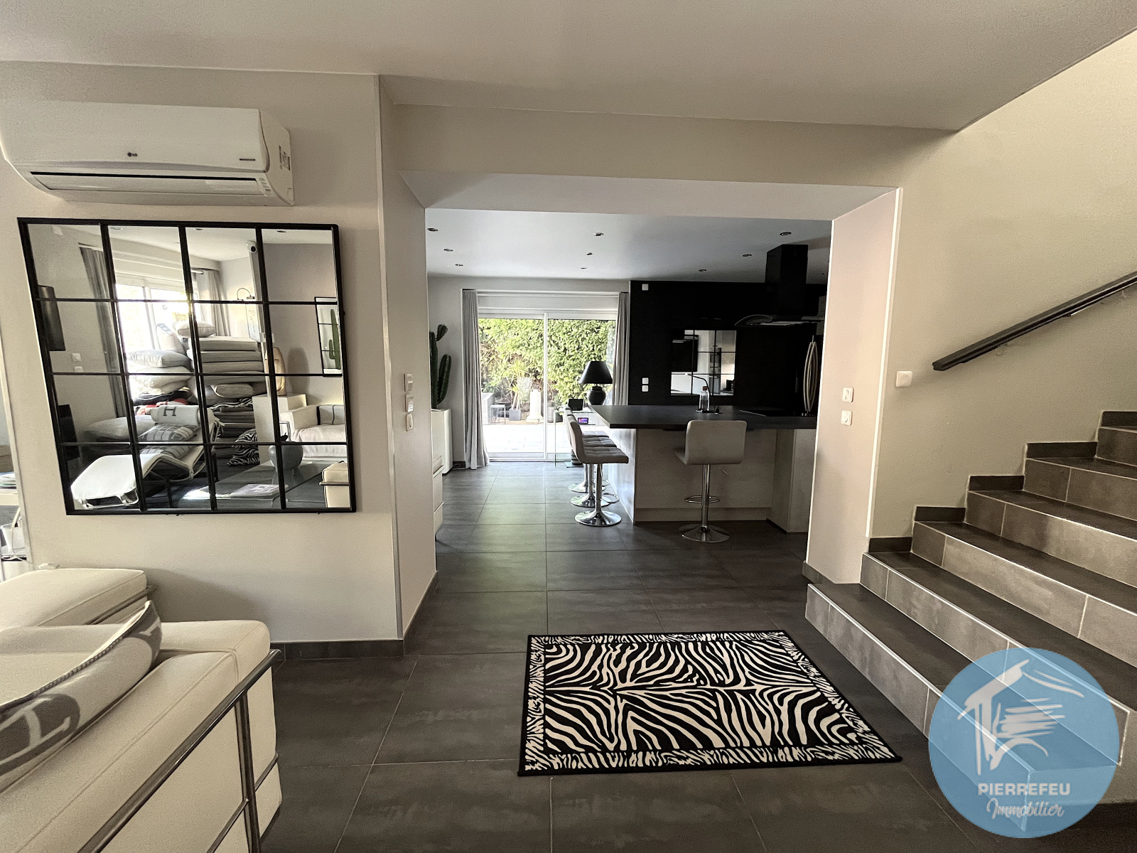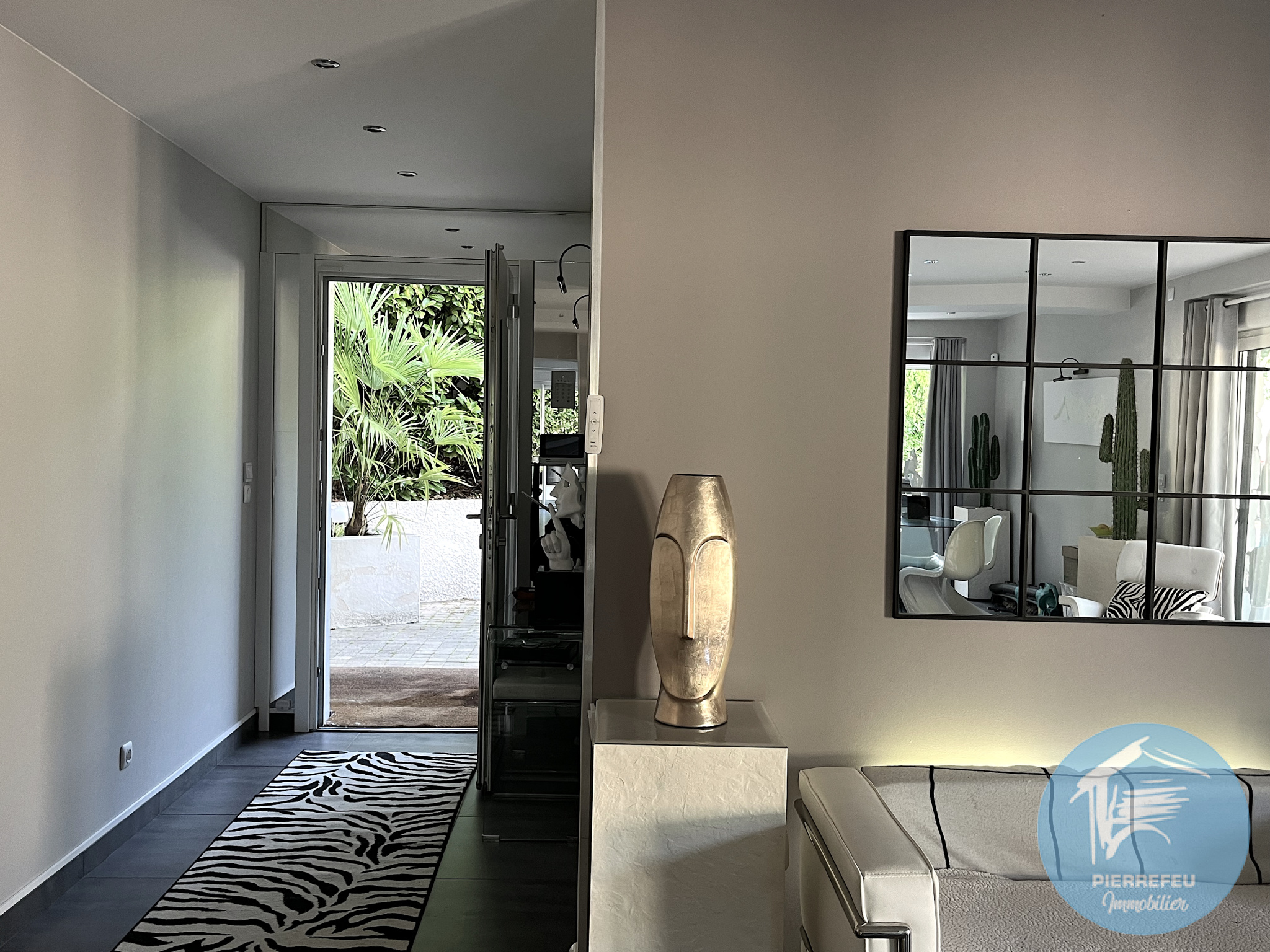 Coexclusivité - PIERREFEU immobilier vous propose à la vente, sur Champagne-au-Mont d'Or - limite Ecully, cette demeure familiale individuelle d'environ 210 m² (250m2 surface utile), élevée sur trois niveaux et entièrement rénovée avec goût. Édifiée sur un terrain paysagé de 900 m² exposé Sud-Est, elle conjugue modernité, confort et intimité. Dès l’entrée, une spacieuse pièce de vie baignée de lumière vous accueille, prolongée par une cuisine américaine ouverte sur l’extérieur. Les larges baies vitrées dévoilent une vaste terrasse aménagée, un jardin luxuriant et une piscine chauffée de 10x5m bordée de palmiers et de coins détente. Une suite parentale en rez-de-jardin, avec sa terrasse privative, sa salle d’eau avec douche à l’italienne et ses finitions soignées complètent ce niveau. L’étage est organisé comme un appartement indépendant avec séjour lumineux, cuisine équipée ouverte sur un large balcon filant avec vue, deux chambres, salle de bains et WC séparé. Le dernier niveau, pensé pour le bien-être et le télétravail, propose une chambre supplémentaire, un bureau, une salle de sport, une salle d’eau. Un dressing et de nombreux rangements sur mesure complètent ce niveau. L'accès à la maison se fait par un portail automatisé derrière lequel se trouve un carport pouvant accueillir 3 voitures. Bonne performance énergétique. Climatisation. DPE D. Visites et renseignements : Muriel Chauplannaz - Agent commercial indépendant de la SARL Pierrefeu Immobilier - Immatriculée au R.S.A.C de Lyon sous le Numéro 843 741 570.