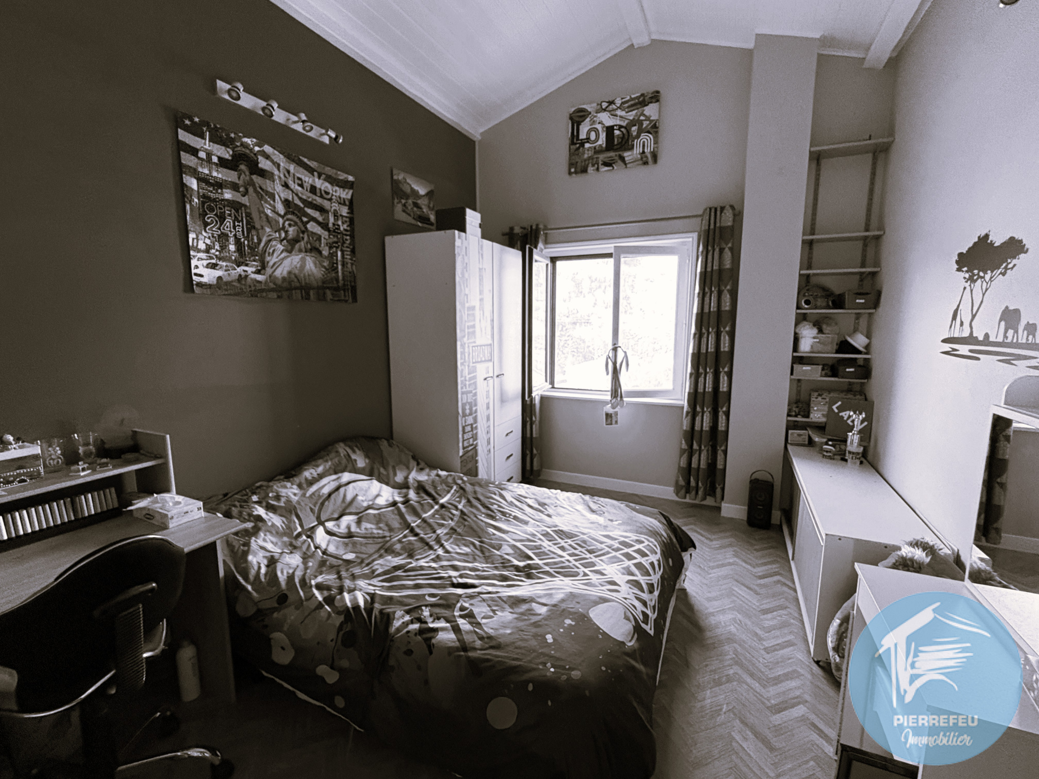 L’étage accueille quatre chambres aux surfaces équilibrées ainsi qu’une salle de bain fonctionnelle. Les annexes constituent un véritable atout : garage moto, cave et dépendance (cuisine d'été et terrasse couverte) permettant le stockage et l’organisation de moments conviviaux aux beaux jours.